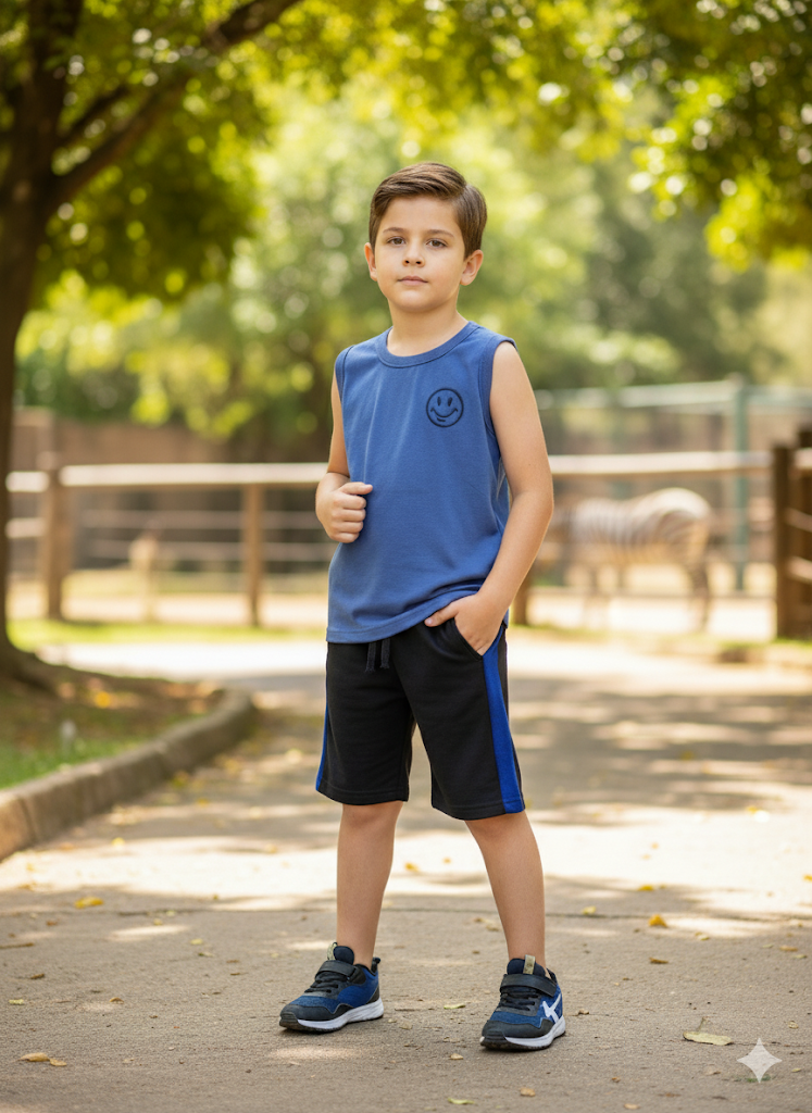 Conjunto Infantil Menino Brandili Tamanho 3 Verão Regata e Bermuda Moletinho