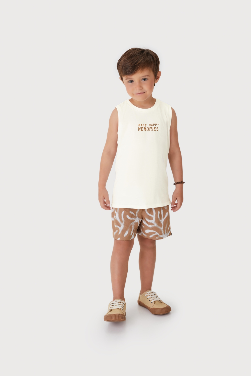 Prepare-se para o verão com o look mais fresco e divertido! O Conjunto Menino Regata Summertime Carinhoso é a escolha perfeita para os dias de sol e aventura. A regata em algodão macio é a estrela do visual, com uma estampa surpresa nas costas, enquanto a bermuda estampada em microfibra garante total liberdade para brincar.